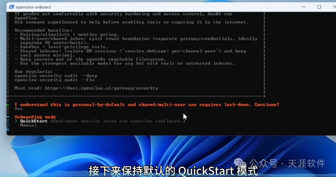 保持默认的模式:QuickStart