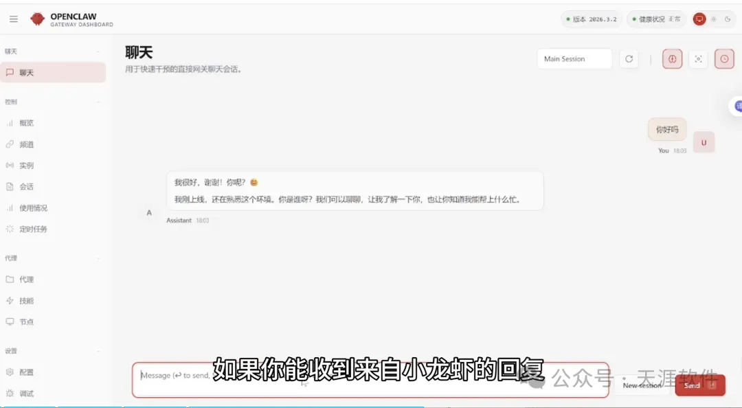 如果 OpenClaw 能正常回复,说明配置成功。