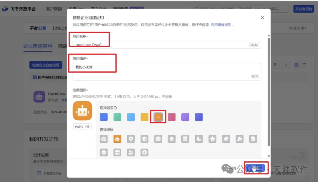 2.创建企业自建应用