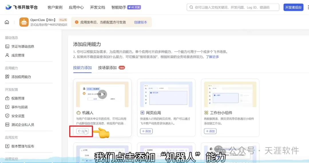在飞书开发者后台的机器人应用: