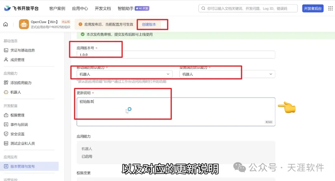 5.创建版本填写好版本并确认发布