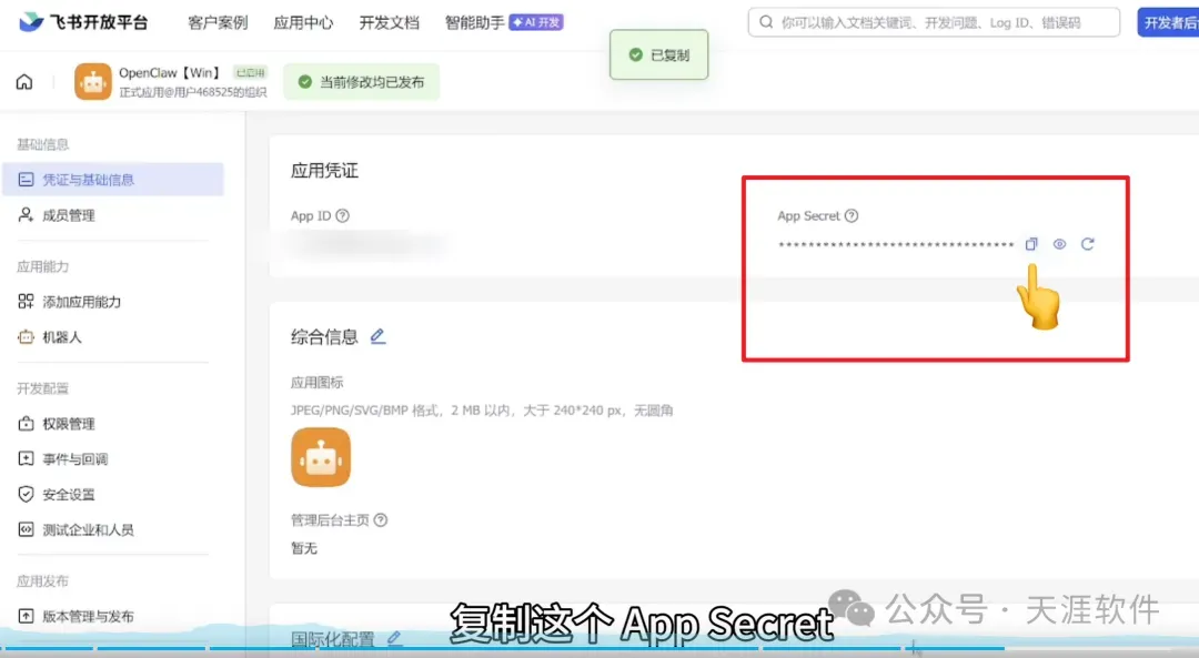 6.输入飞书 App Secret