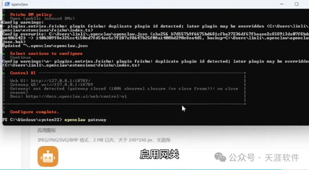完成后运行:以下命令,启用网关