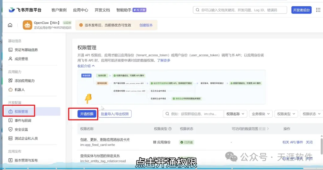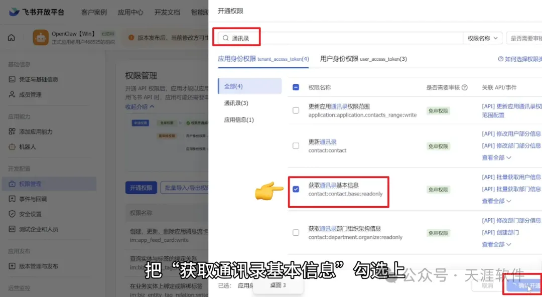 然后在权限管理中新增权限:获取通讯录基本信息