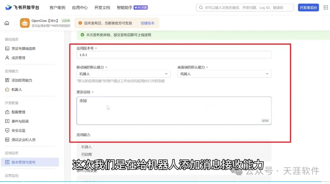 最后创建新版本并发布。