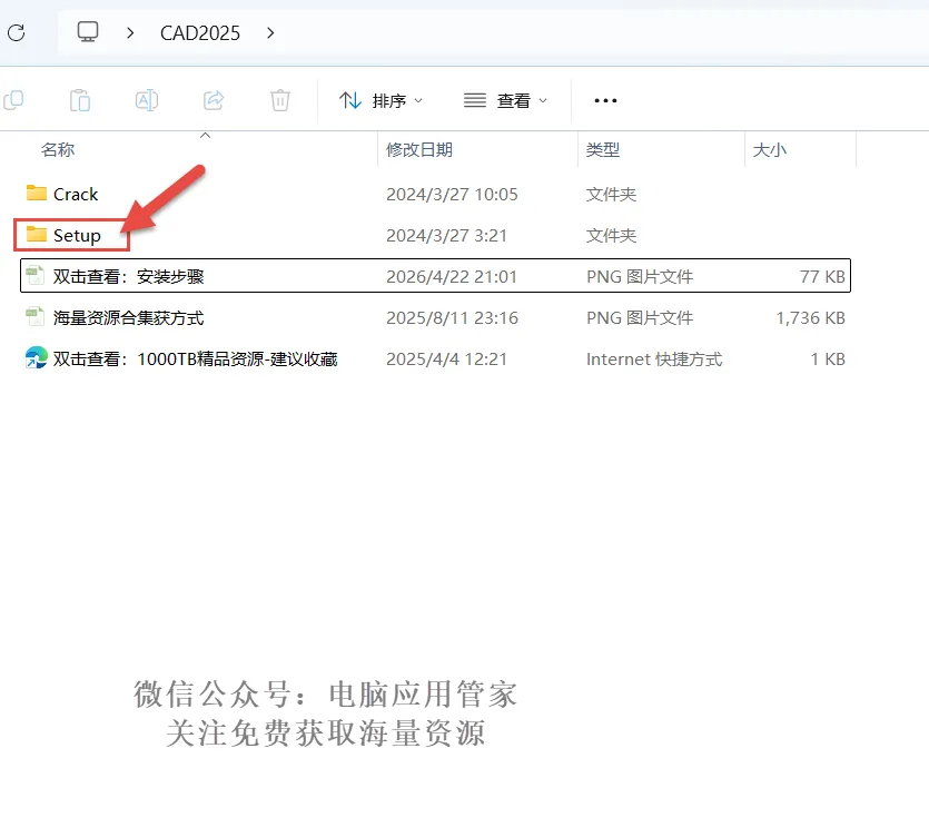 2.双击打开解压后的文件夹,点击进入“Setup”文件夹。