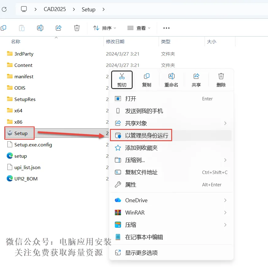 3.先点击一下“Setup”,鼠标右键选择“以管理员身份运行”。
