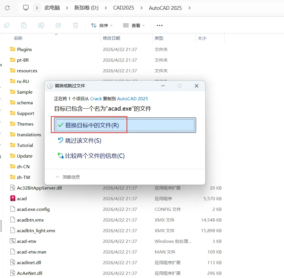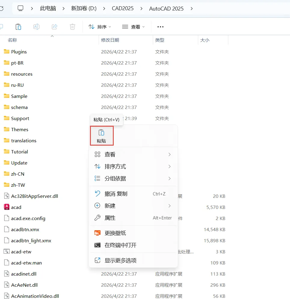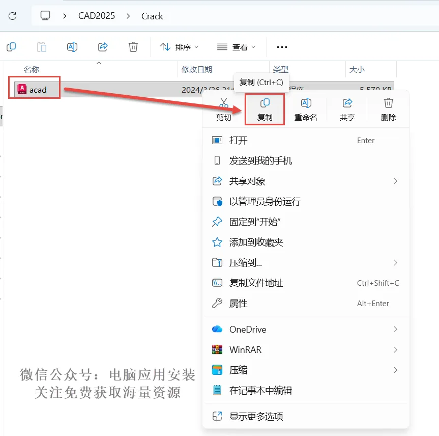 11.复制“acad”文件。