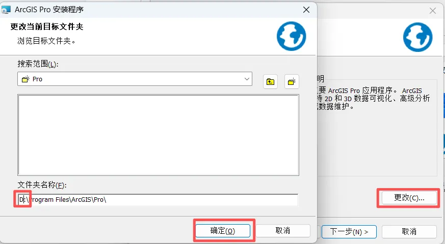 11.修改安装位置:①点击【更改】②修改路径地址中的第一个字符C可更改安装位置(如:把C改为D软件将安装到D盘)③点击【确定】。
