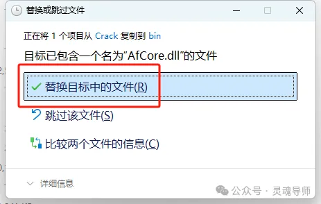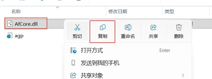 26.继续在打开的【Crack】文件夹中,鼠标右击【afcore.dll】选择【复制】。