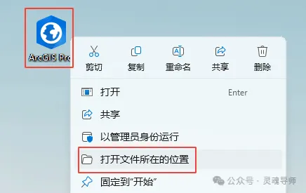 28.鼠标右击桌面【ArcGIS Pro】图标选择【打开文件所在的位置】。