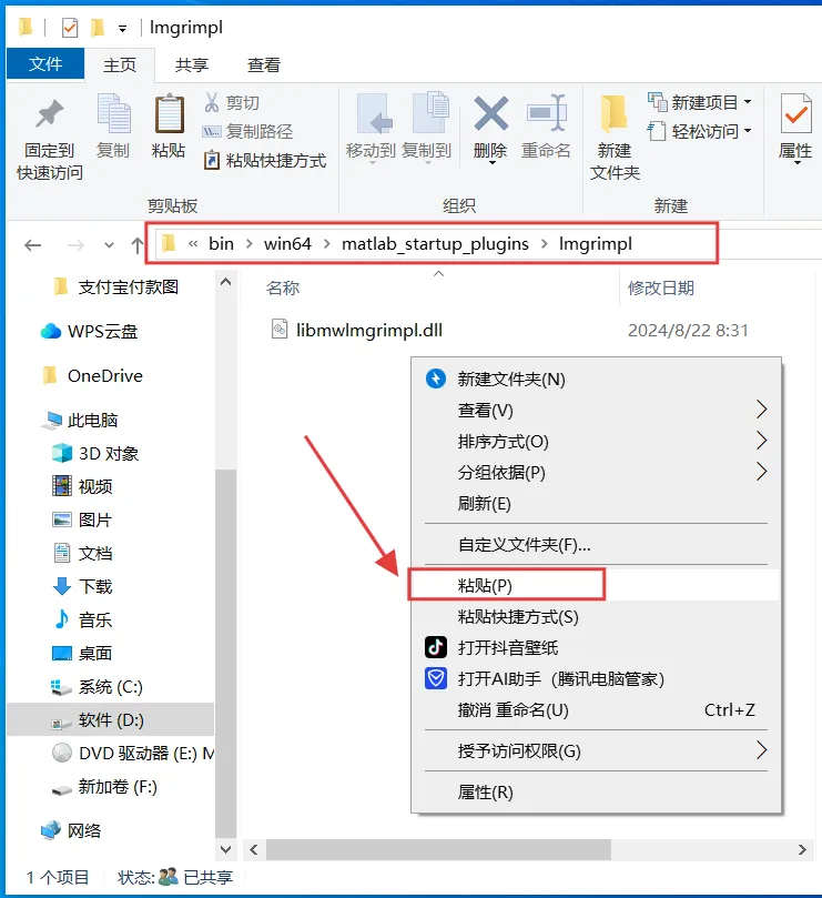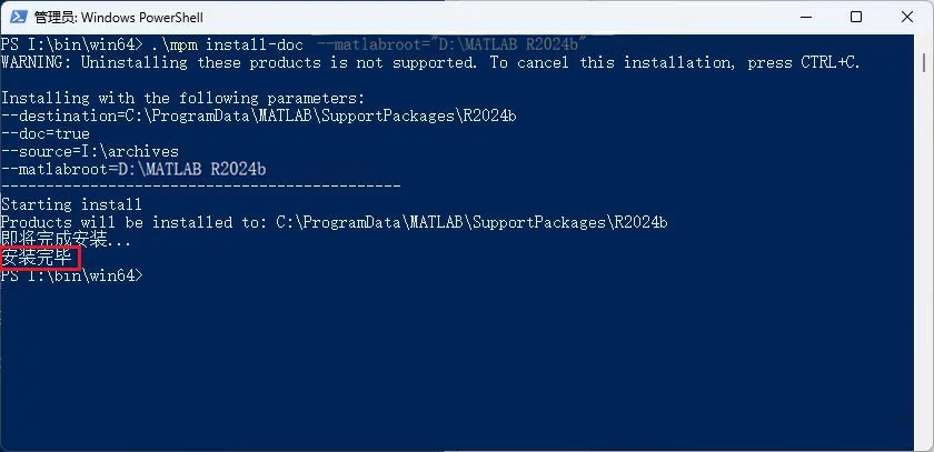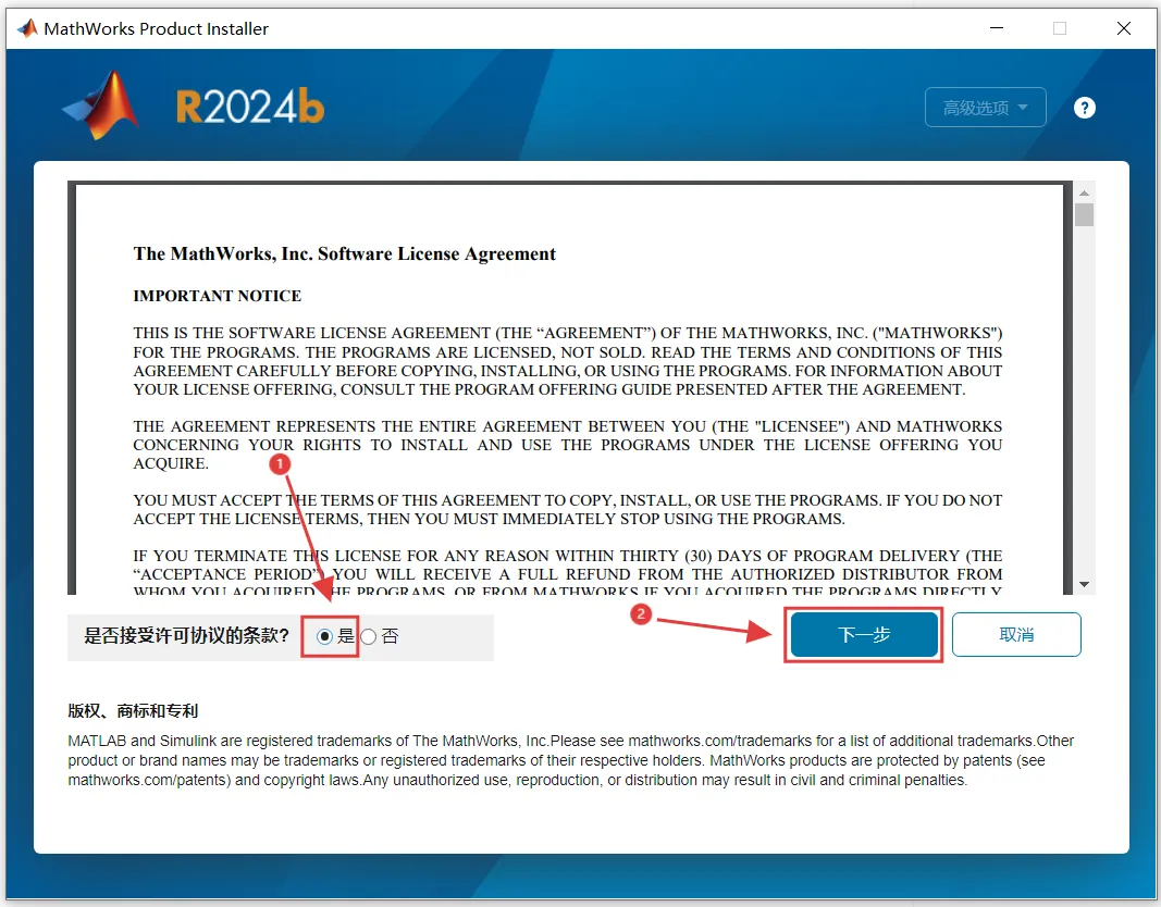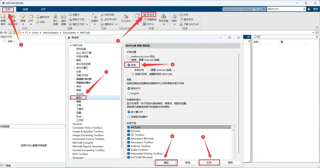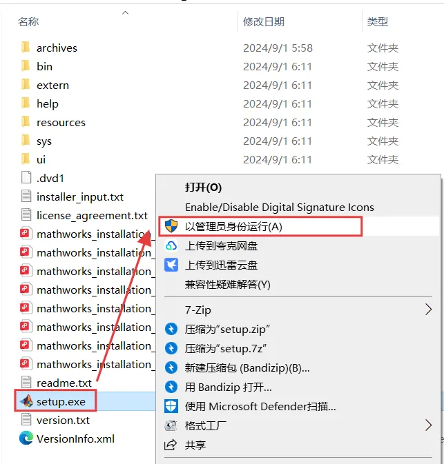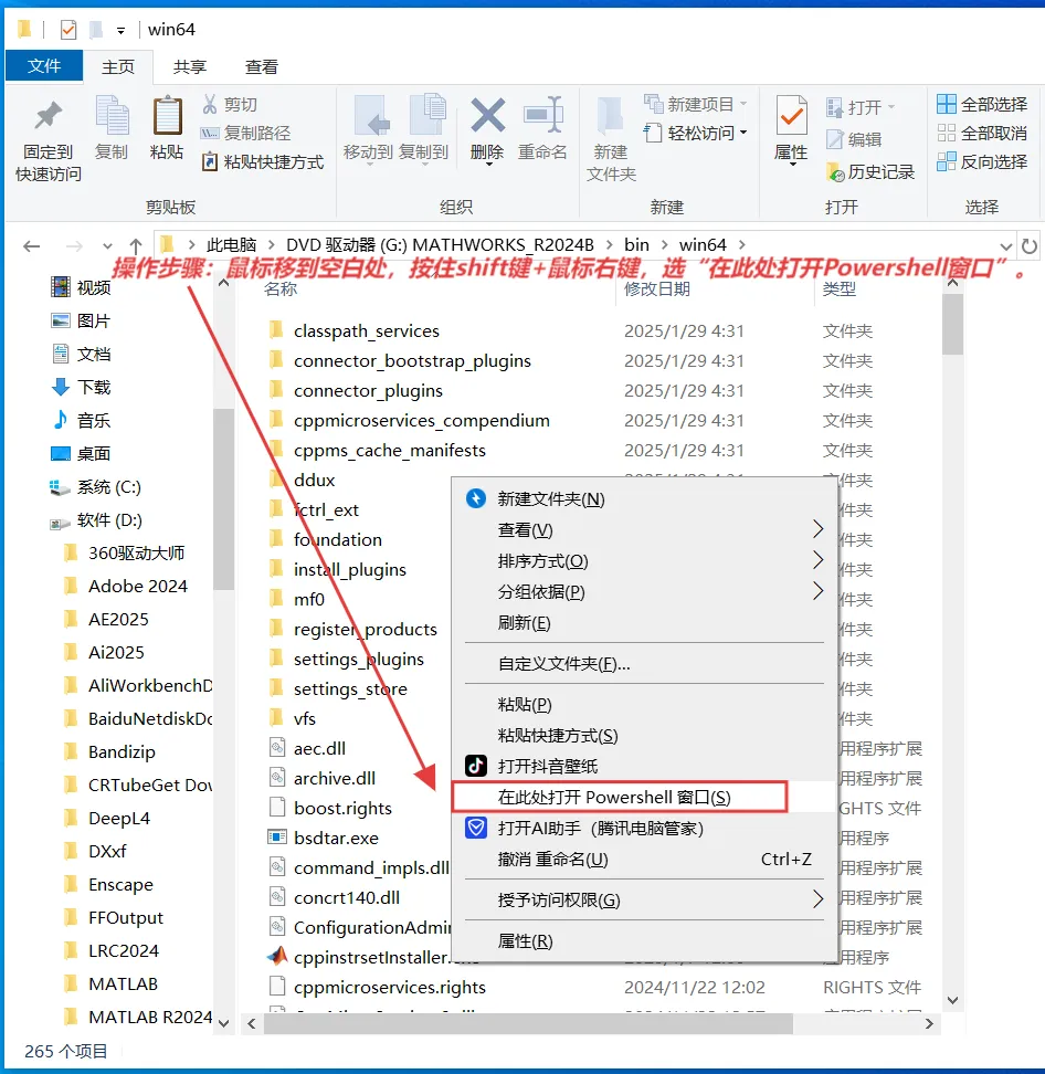 [温馨提示]:我们提供用户下载的所有内容均来自互联网。仅限技术交流,不得用作商业。(解压安装文件前,先退出所有杀毒软件(包括 Windows 系统自带的 Defender和第三方软件等),这样激活文件不会被误删)1.下载解压Matlab R2024b软件安装包,点击打开文件夹。2.打开【R2024b_Windows.iso】或选中后鼠标右键点击【装载】。3.选中【setup】程序,鼠标右键点击【以管理员身份运行】打开Matlab程序安装 。4.点击【高级选项】展开,再点击【我有文件安装密钥】。6.输入密钥【39676-02743-14813-63132-22122-21739-42724-01237-08353-51560-41813-30272-46436-42021-53831-05395-21684-43572-58789-40638-42099-40160-19797-60670-44428-39867 】,输入完点击【下一步】。(输入完,一定要检查一次,确定无误)8.打开刚解压的【Matlab 2024b】安装文件夹。10.选中【license.lic】许可证,然后点击【打开】。12.点击【浏览】可以选择Matlab R2024b软件的安装路径。13.例如在D盘新建一个【MATLAB R2024b】文件夹,选中后点击【选择文件夹】。(安装路径和文件夹不能有中文。)14.选择好Matlab软件安装路径后,点击【下一步】。16.先打勾【添加桌面快捷方式】再点击【下一步】。18.耐心等待Matlab R2024b程序安装完成,时间会比较久。19.显示Matlab R2024b安装完毕后,点击【关闭】。20.回到Matlab R2024安装文件夹,打开【Crack】文件夹。21.本机是Win10系统,点击打开【win10专用】文件夹。(如果是win11系统就选择【win11专用】,选错Matlab程序会无法正常使用。)23.回到电脑的桌面,选中【Matlab 2024b图标】右键点击【打开文件所在位置】。25.继续打开【matlab_startup_plugins】文件夹。27.把前面复制的文件【粘贴】到这里。(一定要检查正确打开文件夹,再粘贴)28.弹窗点击【替换目标中的文件】。(如果没有这个就是粘贴错位置了)29.返回电脑桌面双击【Matlab R2024b图标】打开软件。30.成功进入Matlab R2024b软件界面,可以开始使用,安装完成。如果win10系统打开Matlab 2024b软件弹出【License checkout failed.License Manager Error-8】解决:win10系统在步骤21中,必须选择【win10专用】文件夹操作,这样就没有弹窗问题了。1.在解压的Matlab R2024b文件夹找到【离线帮助文档】打开。2.点击【R2024b_Doc_Windows.iso】打开,或者选中右键点击【装载】。5.鼠标移动在空白位置,按住shift键+点击鼠标右键,选择【在此处打开Powershell窗口】。.\mpm install-doc --matlabroot="D:\MATLAB R2024b"等号后面是MATLAB的安装路径,也就是前面安装步骤13步和14步选择的安装位置,我前面安装在D盘的MATLAB R2024b文件夹,所以等号后面的安装路径就修改为D:\MATLAB R2024b, 输入完成点击【回车键】,然后等待安装完毕。(自己前面安装什么位置就修改为那个路径,如果前面没有修改安装路径,等号后面则是默认安装C:\Program Files\MATLAB\R2024b)9.回到电脑桌,双击【Matlab 2024b图标】打开软件。10.按下面图进行操作,点击【主页】—【预设项】—【帮助】—【本地】—【应用】—【确定】。选择安装完毕后退出程序,然后重启电脑。11.重启后打开MATLAB R2024b程序,点【主页】—【帮助】,分别选择【文档或【示例】打开即可看到相关内容,安装完成!(最好可以断网测试一下是否正常)1.安装提供的所有下载文件均是网络收集,请于下载后的24小时内删除。如需体验更多乐趣,请支持正版。2.我们提供用户下载的所有内容均来自互联网。如有内容侵犯您的版权或其他利益的,请联系我们会在收到消息后24小时内处理。