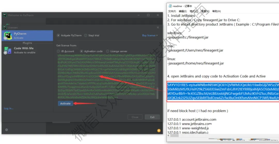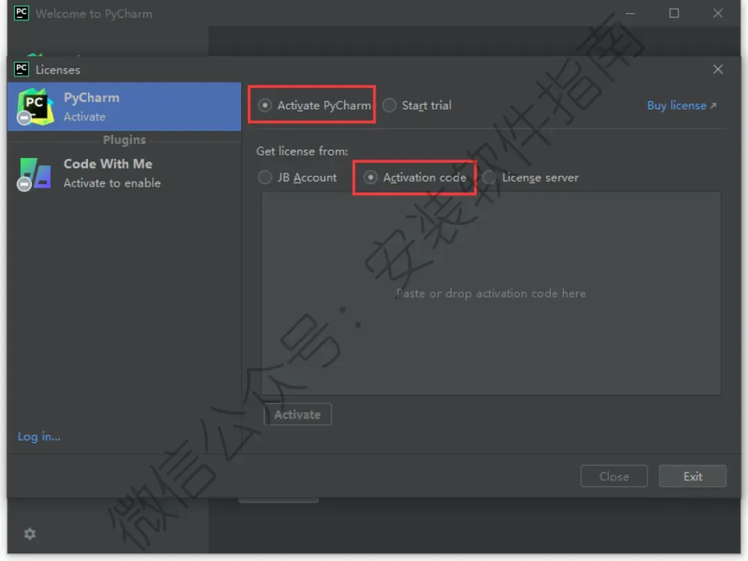 20、选择 Activate PyCharm,接着选择 Activation code,放在这