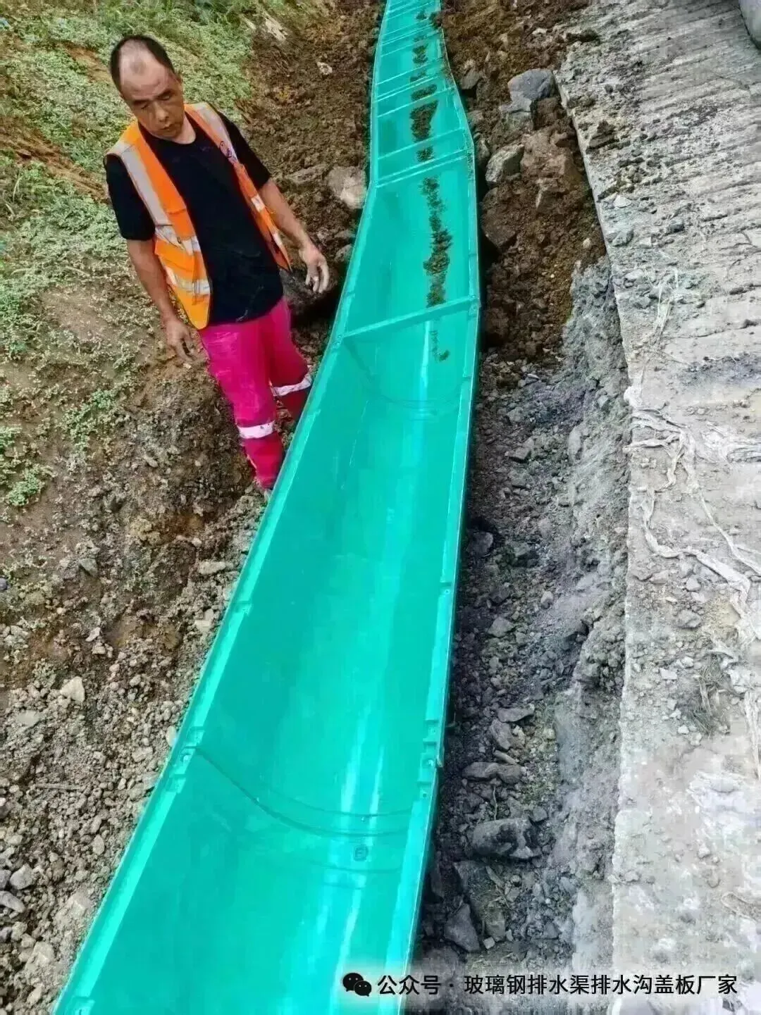玻璃钢排水渠是以玻璃纤维增强材料(FRP)为基材,经模压工艺成型,具备连续排水功能的槽型构件。核心优势在于轻质高强、耐腐蚀、排水快、安装便捷、寿命长,已应用于市政、工业、农业等领域。