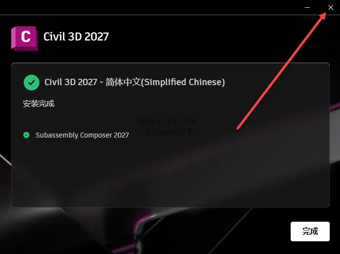 8、安装完成,点击右上角关闭