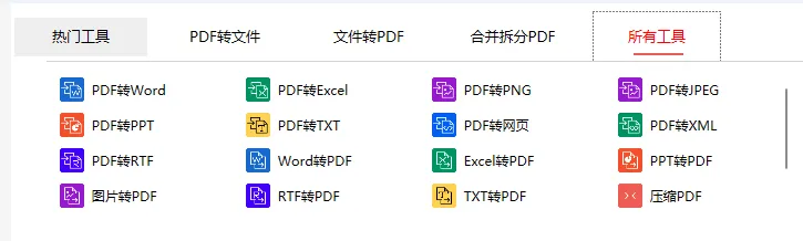 点击即可将每种文件格式转换成为 PDF 重点是免费