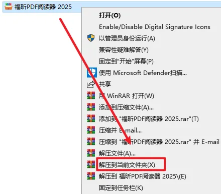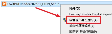 2.打开刚刚解压的文件夹,选中”FoxitPDFReader20251_L10N_Setup”文件,右键选择“以管理员身份运行”