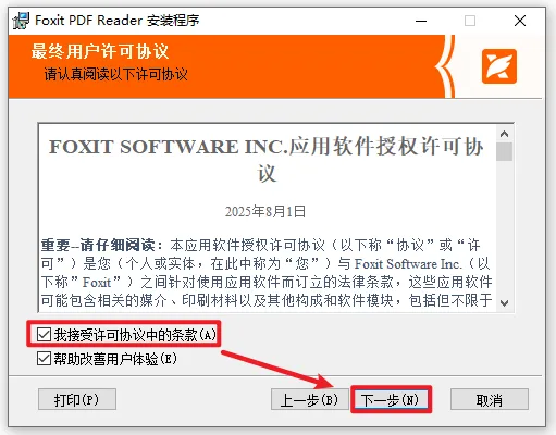 5.勾选“我接受...”,点击“下一步”