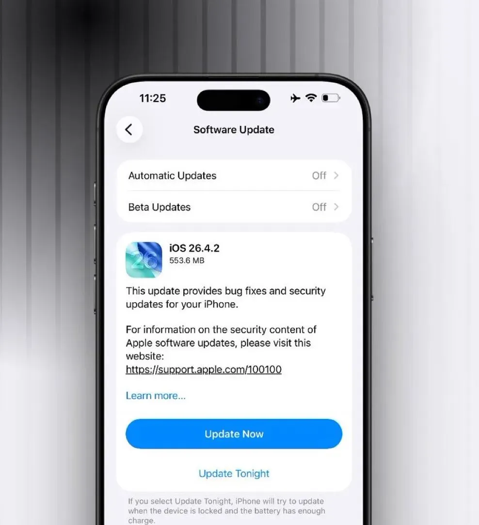 iPhone / iPad:设置 → 通用 → 软件更新 → 下载并安装(iOS/iPadOS 26.4.2)。