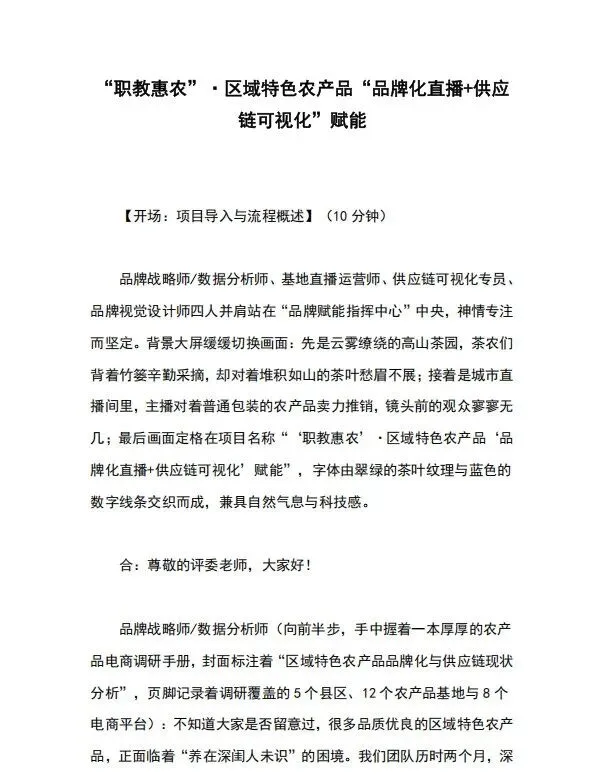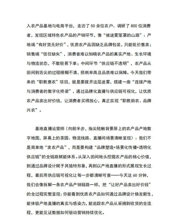 商贸赛道金奖项目模板:职教惠农——区域特色农产品“品牌化直播+供应链可视化”赋能