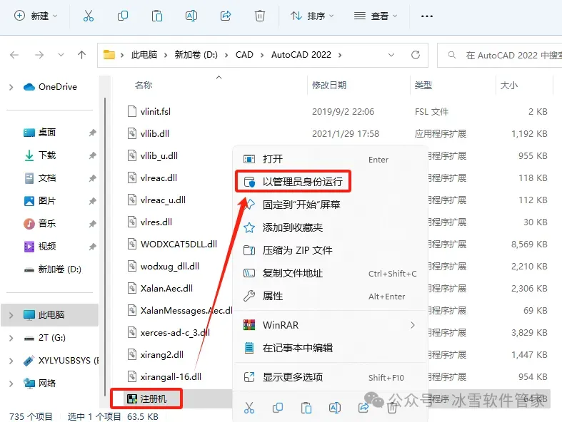 14.鼠标右击粘贴后的【注册机】选择【以管理员身份运行】。