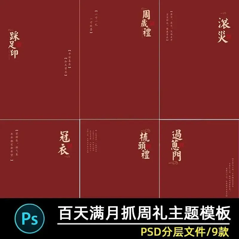 【宝宝满月周岁】百天抓周礼PSD模板9款全网整理分享!
