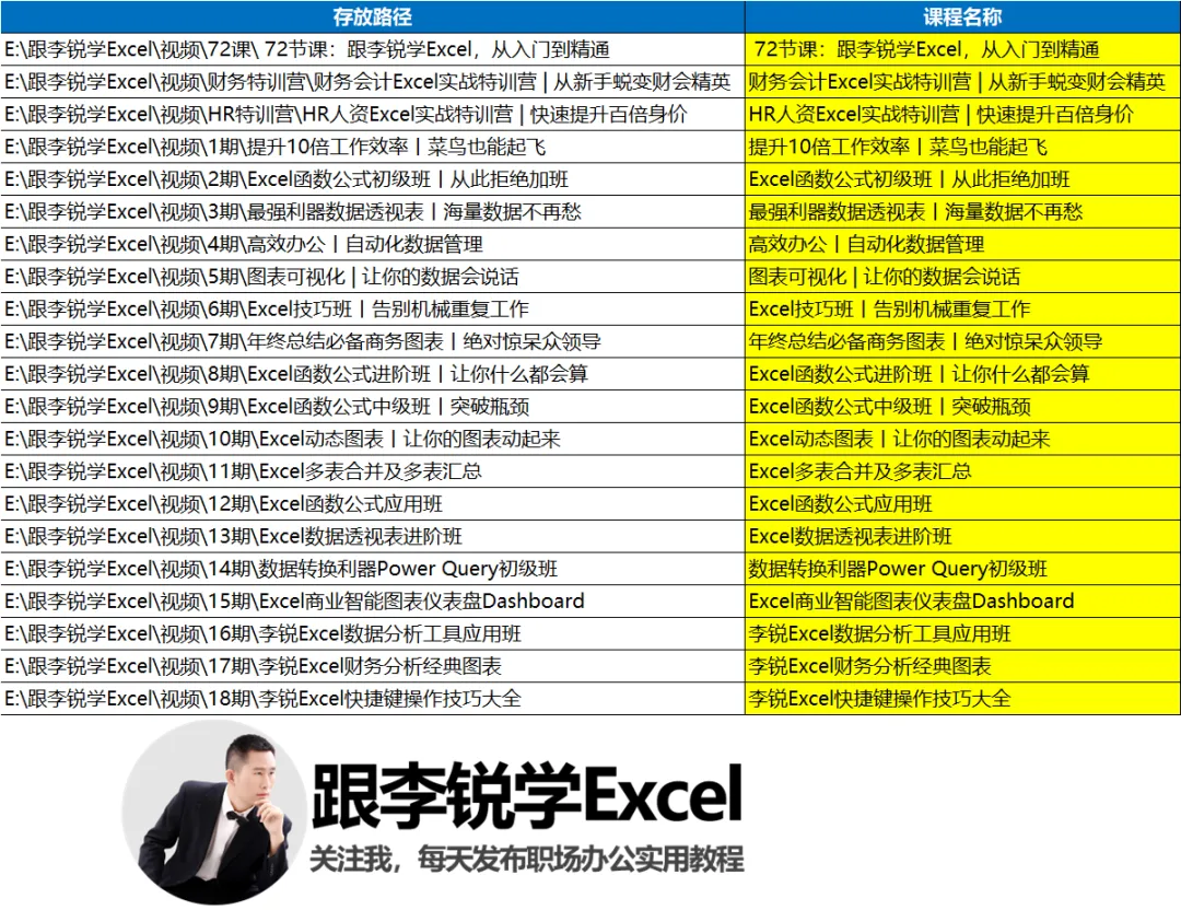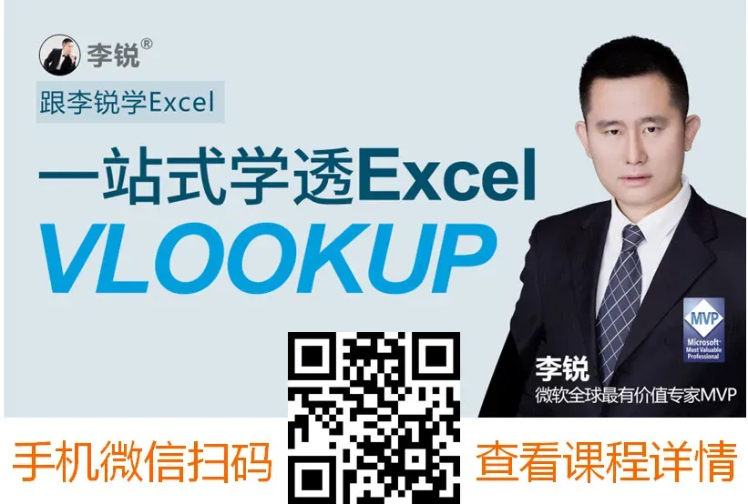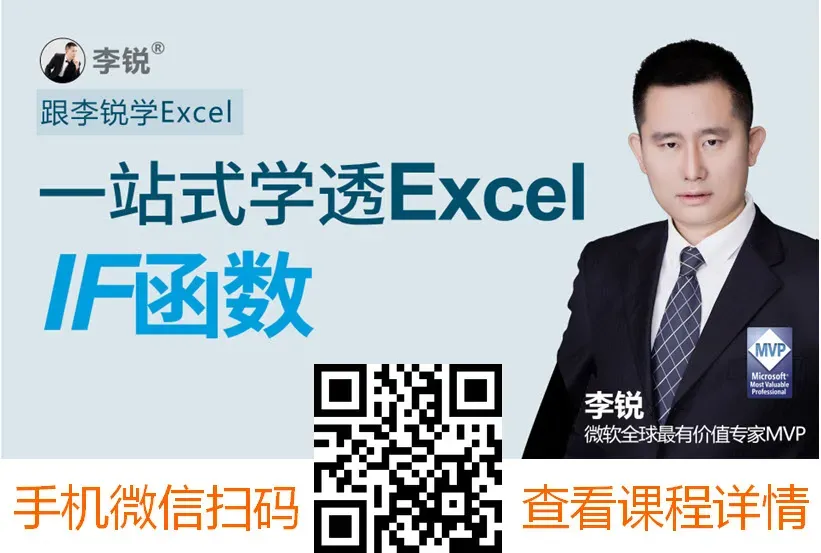 除了本文内容,还想全面、系统、快速提升Excel技能,少走弯路的同学,请搜索微信公众号“跟李锐学Excel”点击底部菜单的“知识店铺”或下方扫码进入。