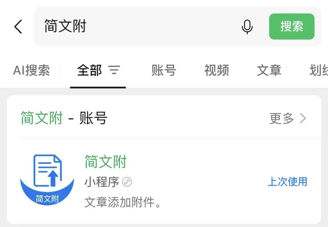 搜索小程序:在微信中搜索“简文附”小程序。