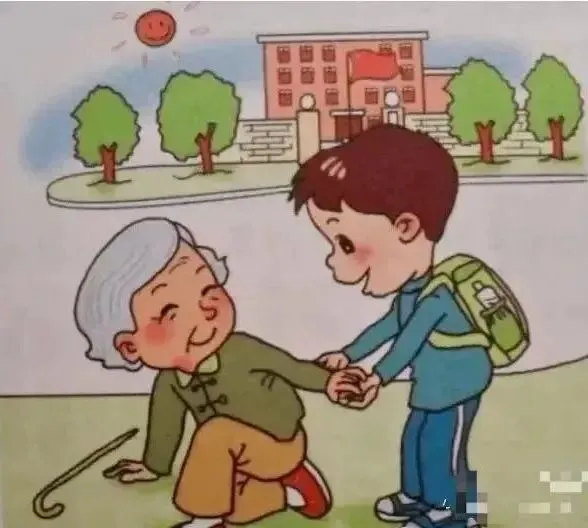 走着走着,他忽然看见一位老奶奶脚下一滑,不小心摔倒了,手里的东西散落一地。小明连忙快步跑上前,小心翼翼地扶起老奶奶,弯腰帮老奶奶捡回了东西。