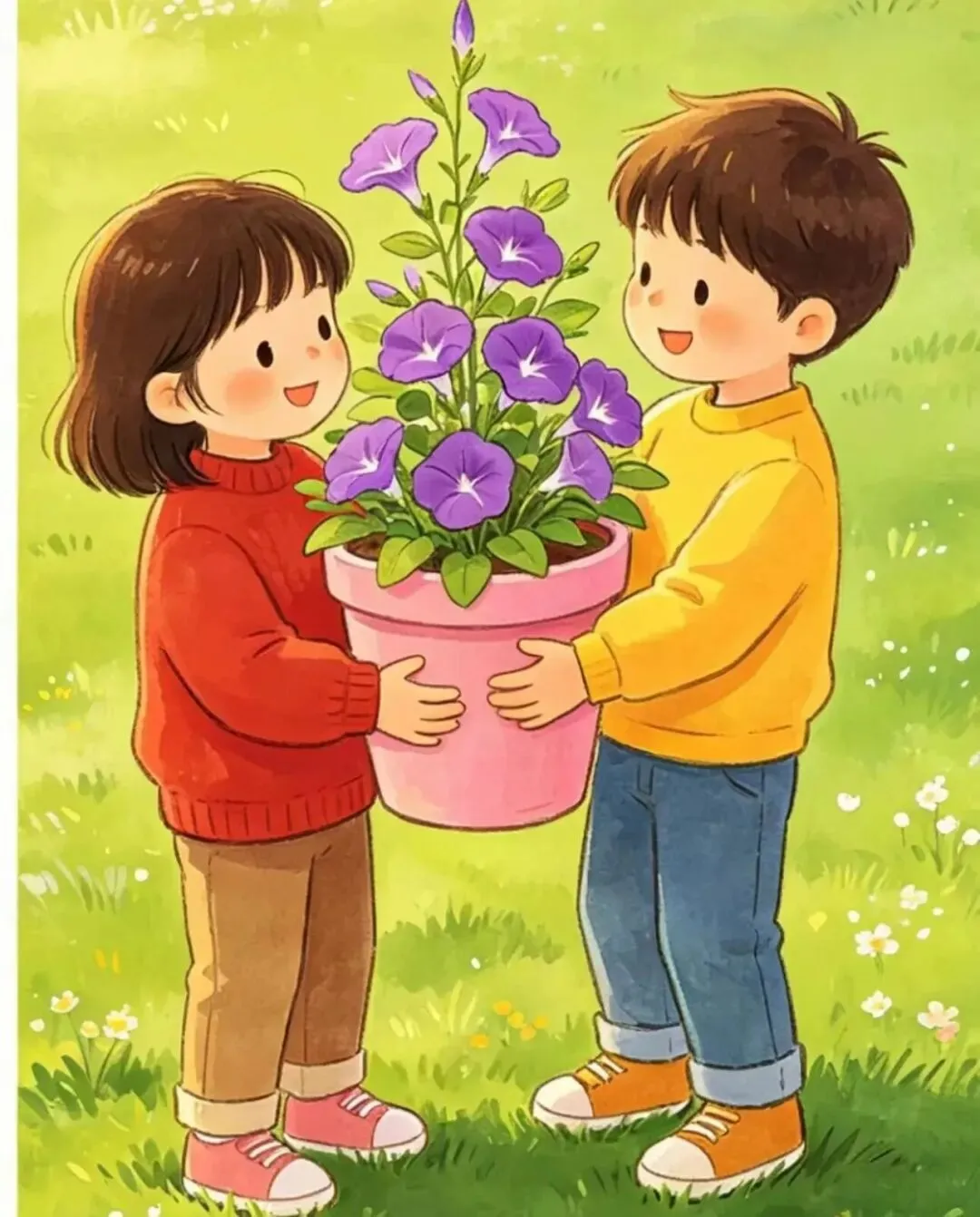 小乐看见后,连忙上前帮忙。她们对视一笑,一人扶住一边,齐心协力,慢慢挪动花盆。两个人互相配合,一点也不松懈。