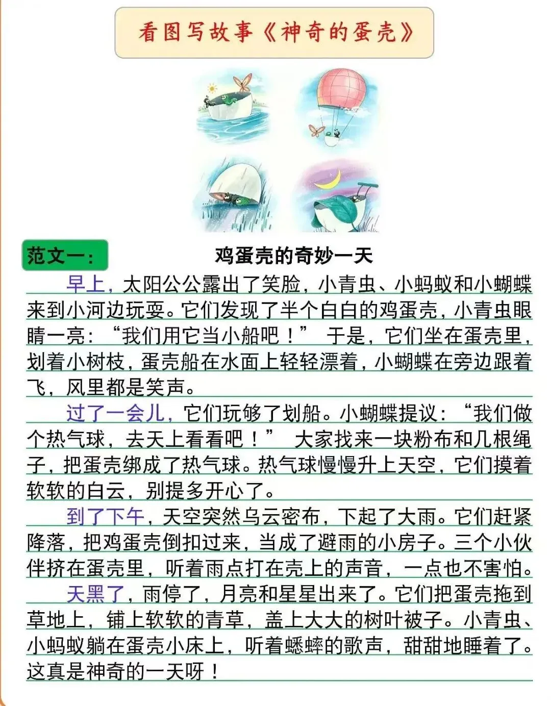 范文四、五:神奇的蛋壳(二年级多幅图写话)
