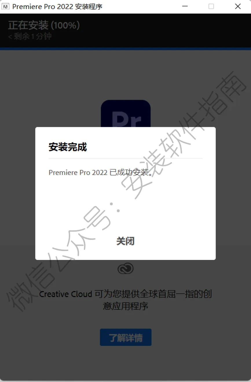 4.安装完成后,点关闭