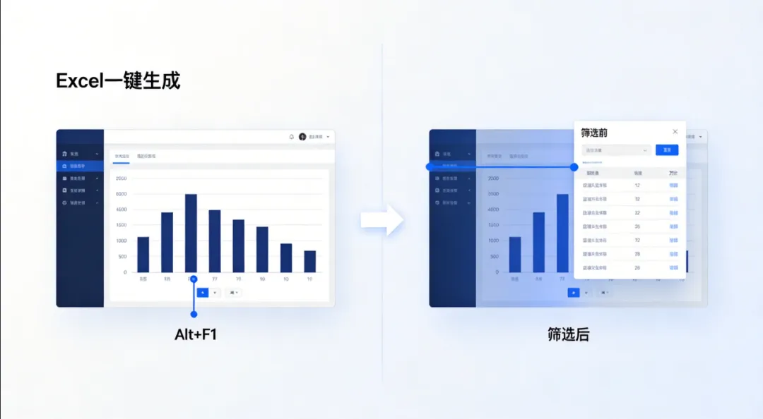 几千行数据做图表,手动选数据、选图表类型太费时间,用快捷键一键生成专业图表。