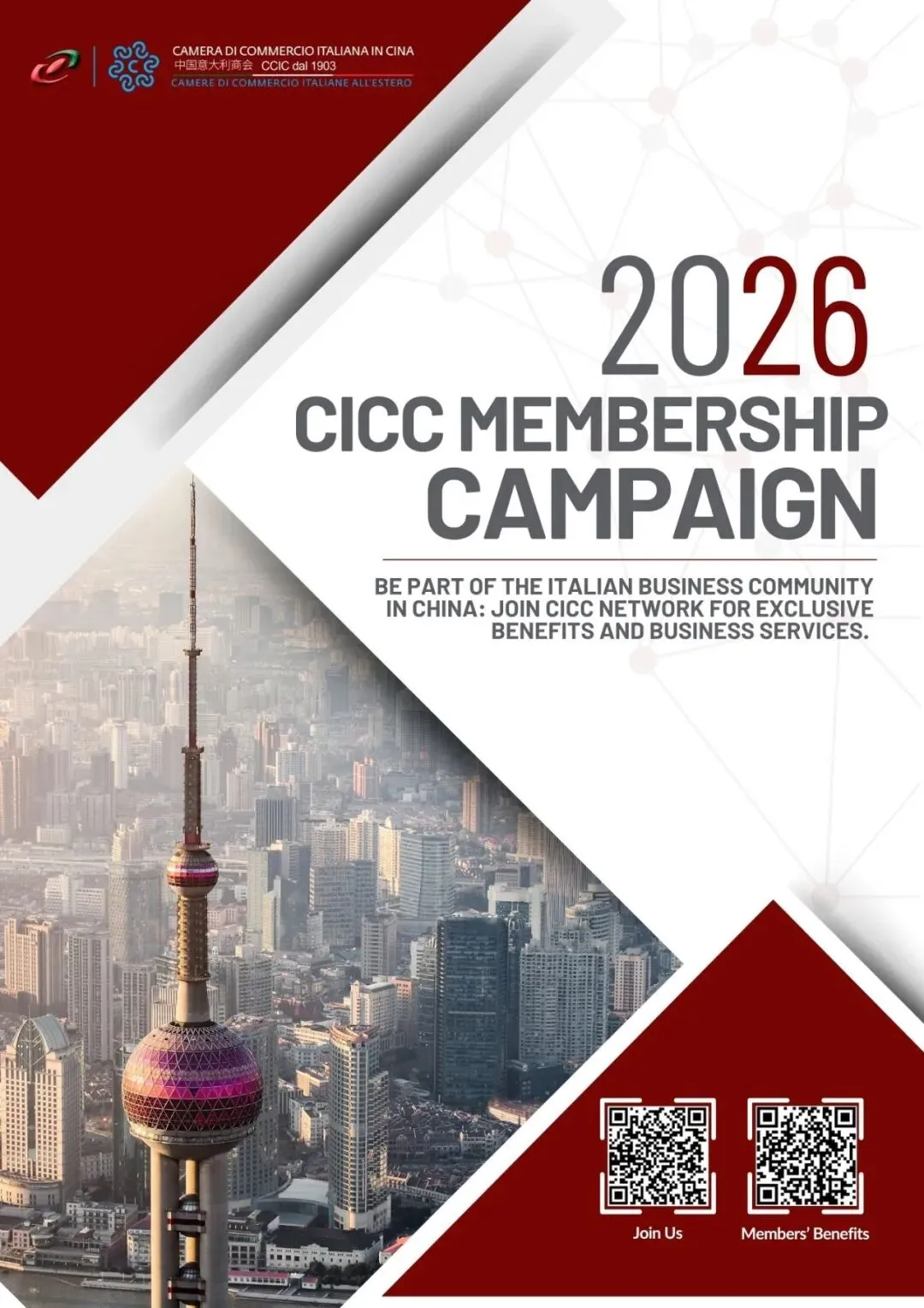 The Italian Chamber of Commerce in China (CCIC) is the only business organization recognized by both the Italian Government (Ministry of Economic Development, MiSE) and People’s Republic of China (Ministry of Civil Affairs, MoCA) that aims to boost the internationalization of Italian business and to promote the “Made in Italy” in the PRC. Established in 1991, CICC has now offices in Beijing, Tianjin, Chongqing, Chengdu, Guangzhou, Shenzhen, Shanghai and Suzhou.