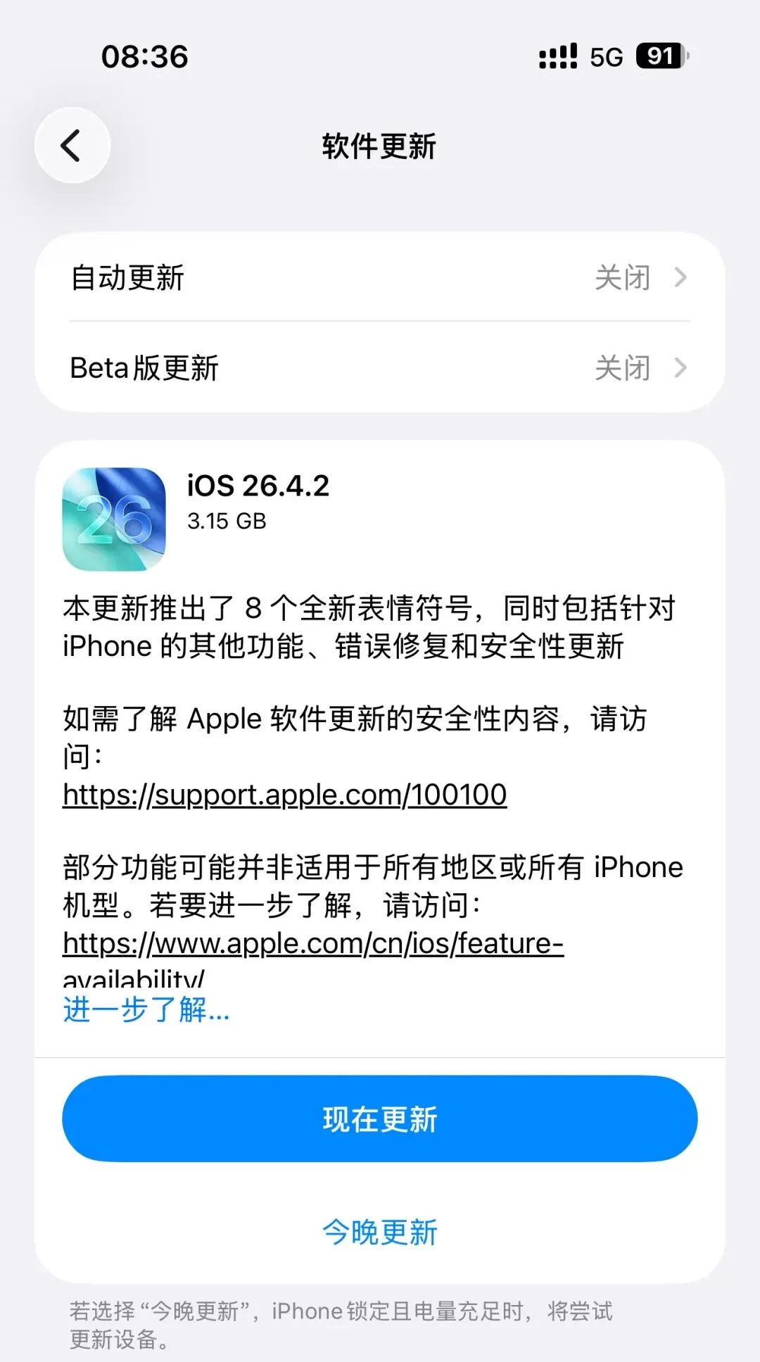 iOS 26.4.2 正式版(23E261)更新内容
