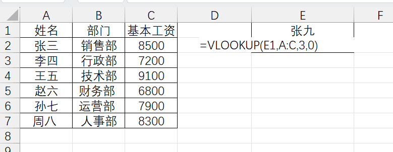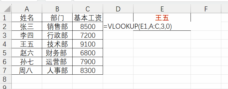 使用举例:查找某人在薪资表中的基本工资。