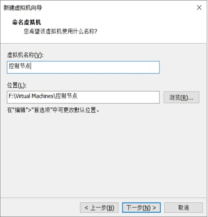 2.6虚拟机名称自定义,但是要记得,后续到私有云部署阶段还要改名字区分。位置放到非C盘的位置,点击下一步。