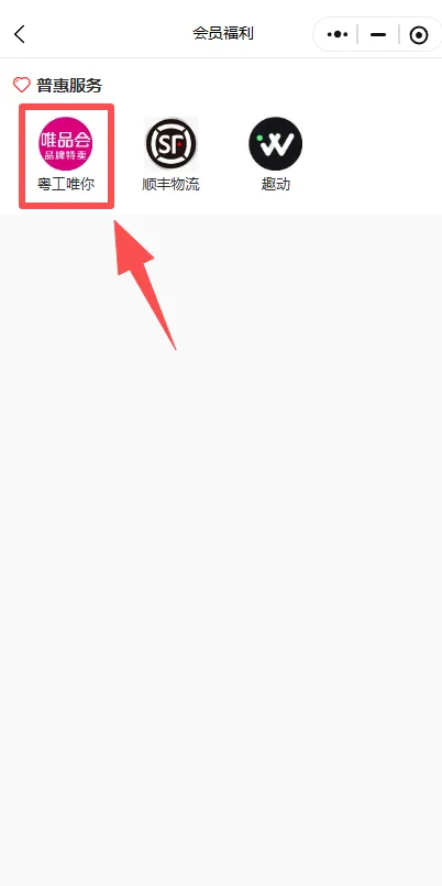 用户中奖后,登录“粤工惠”小程序,依次点击 “服务” - “粤工唯你” 跳转至“唯品会专区”并授权登录(如下图),优惠券即可直充到账。