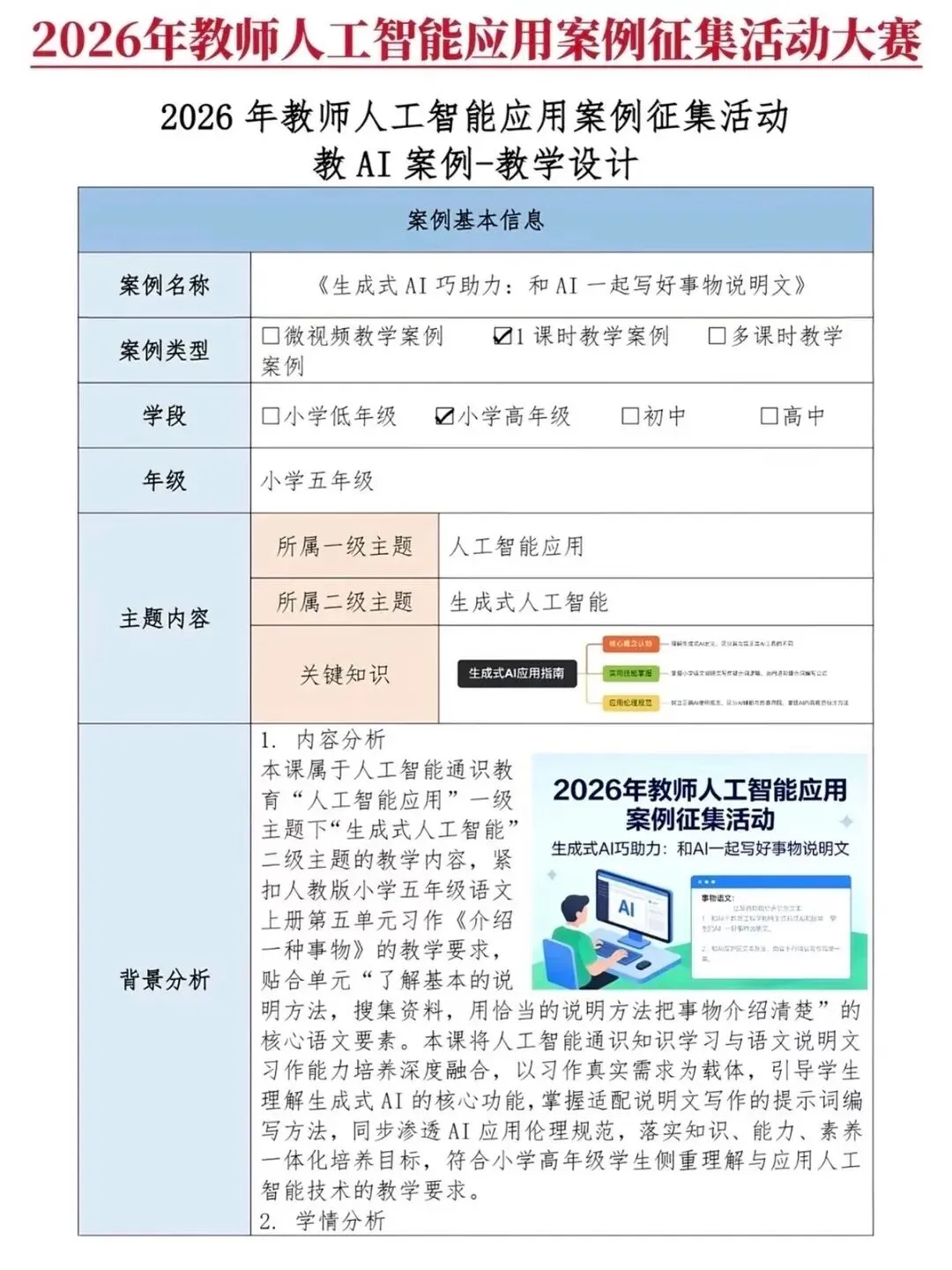 教育部2026年教师人工智能应用案例征集开始啦🔥 国家级赛事,评职称加分、提升个人竞争力,错过真的要等一年!