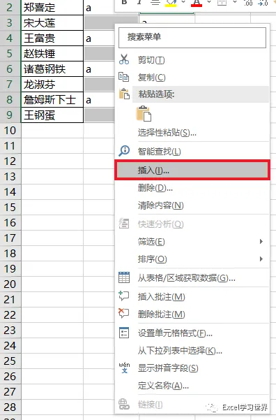 5. 鼠标右键单击 --> 在弹出的菜单中选择“插入”