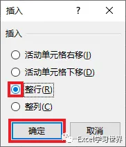 6. 在弹出的对话框中选择“整行”--> 点击“确定”