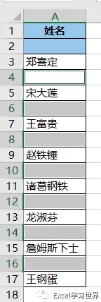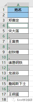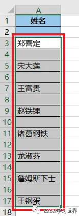 7. 选中 A3:A17 区域 --> 按 Ctrl+G