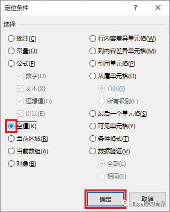 9. 选择“空值”--> 点击“确定”