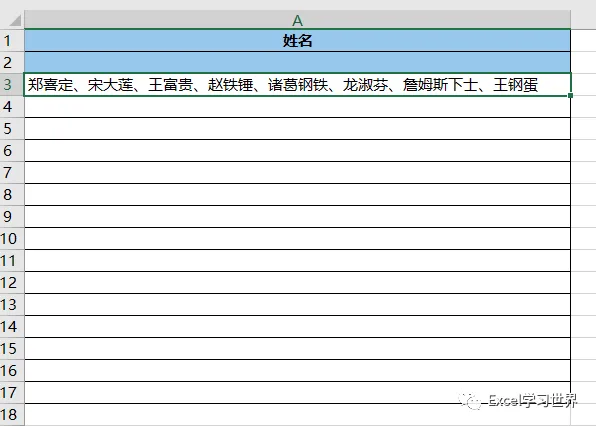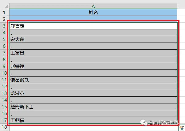 将下图 1 的数据表中的所有姓名区域合并,姓名之间添加分隔符。