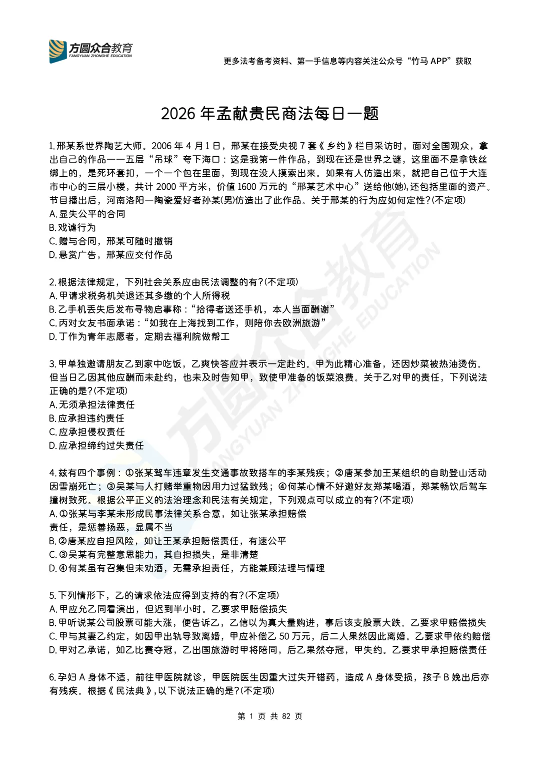 【孟献贵-2026民商法每日一题(1-147)】