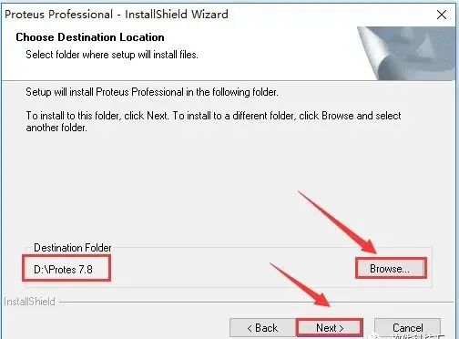 15、选择软件的安装目录(参照第8步软件安装路径),我这里是【D:/Proteus 7.8】,然后点击【升级】。