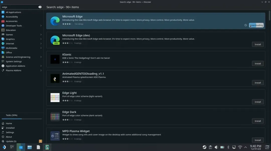 打开Discover商店搜索Microsoft Edge并安装