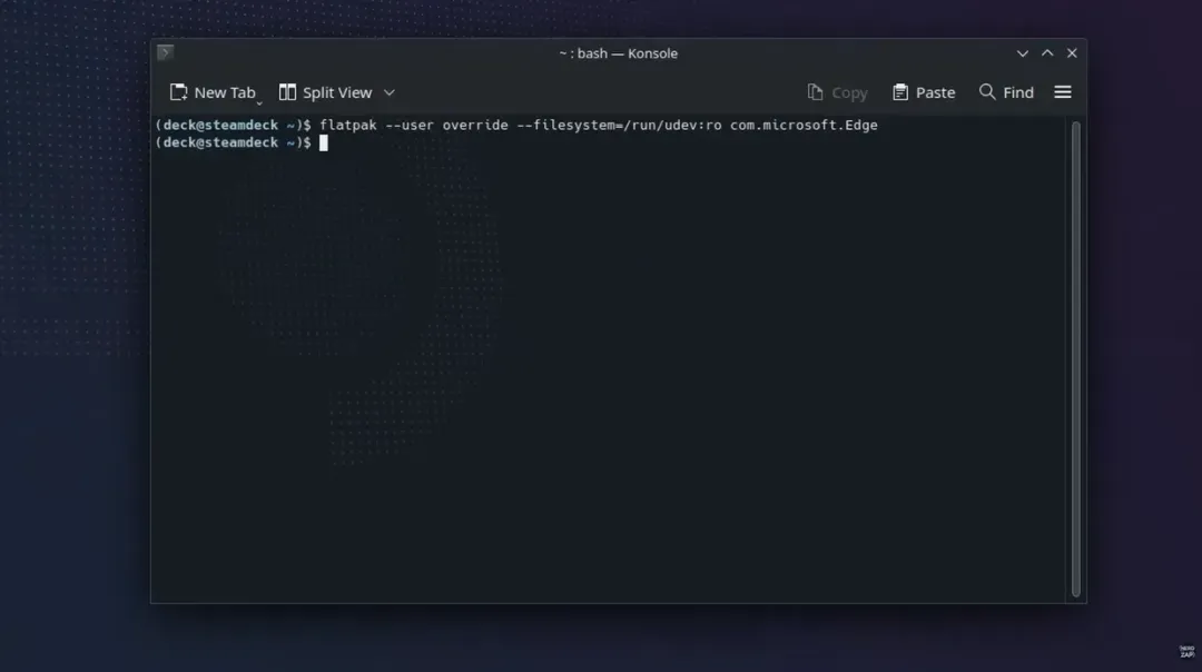 flatpak --user override --filesystem=/run/udev:ro com.microsoft.Edge按下回车键后即可关闭系统控制台;它不会显示成功消息,这是正常现象。