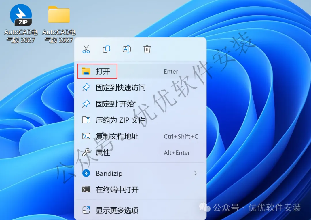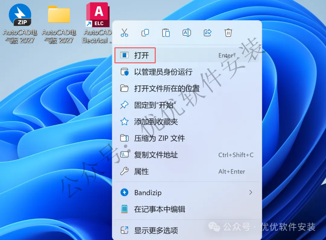 15、回到桌面,右键桌面上的【AutoCAD Electrical 2027软件图标】,点击【打开】