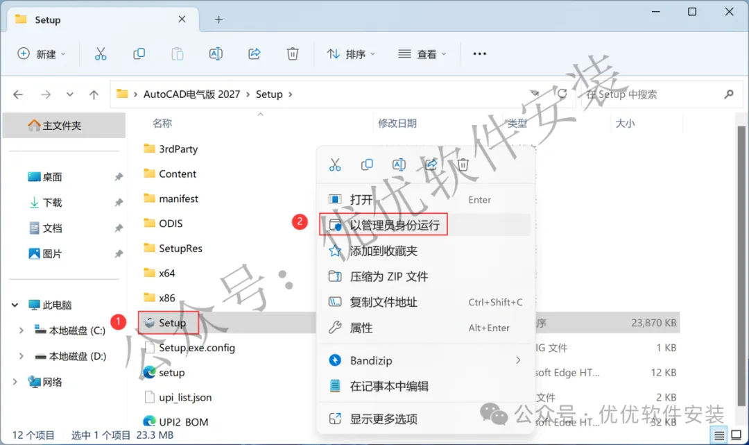4、找到【Setup】应用程序,右键选择【以管理员身份运行】它